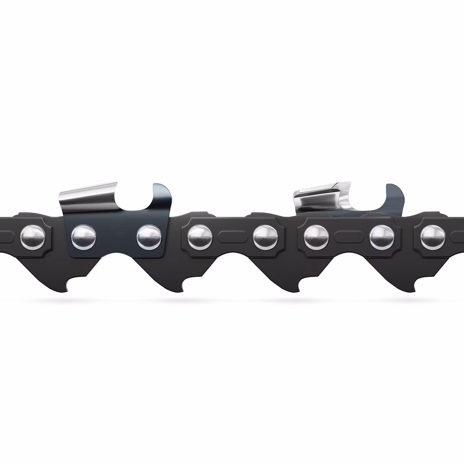 Kedjan är SEMI CHISEL-typ med rundad tandprofil som lämpar sig för professionellt bruk samt för den kvalitetsmedvetna hobbyanvändaren av motorsåg. Tack vare den rundade tanddesignen erbjuder kedjan en minskad kastrisk. Kedjan levereras slipad till hösta skärpa och är dessutom försträckt vilket minskar behovet av försträckning efter en period av användning.